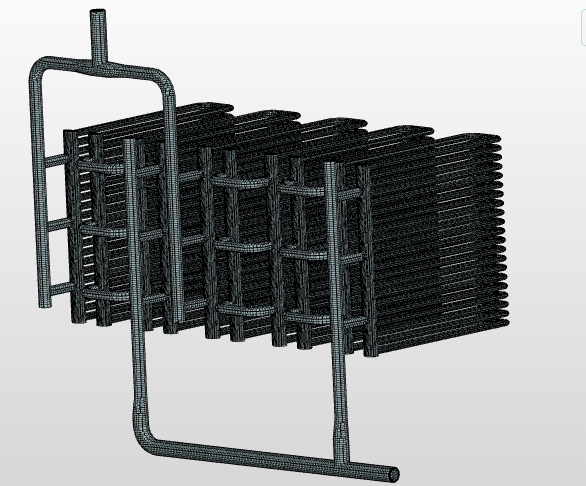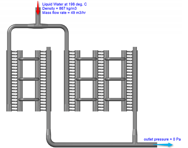 This project is aimed at simulating the flow of liquid water super-heated to a temperature of 198° C (471 K) in a heat-exchanger. The primary purpose is to determine the pressure drop across the heat-exchanger and determine the mass flow distribution in the heat-exchanger pipes.
