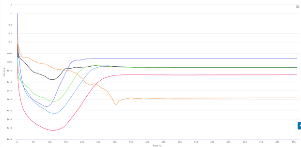 Could my simulation be diverging this time because it is too loose? As in, the default values are already accepting too much of the new iteration results making each successive calculation have larger and larger residuals?