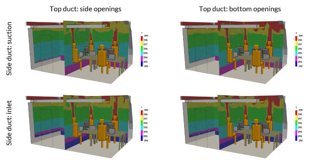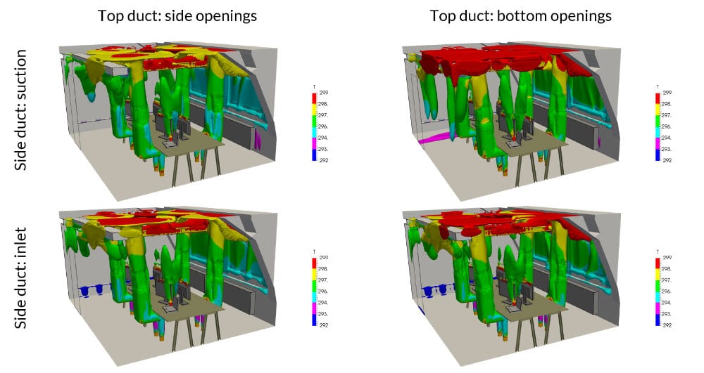 Analyzing the simulation results allow us to easily compare various AC design configurations side by side in order to determine the most optimal one in terms of air velocity and temperature.