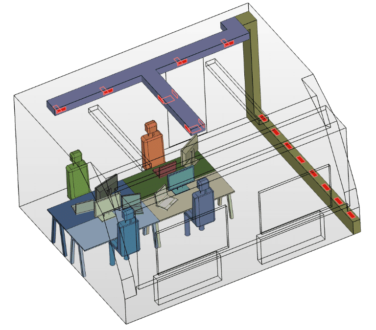 Creating a comfortable indoor climate in an office involves multiple tasks, such as providing the proper volume of fresh air, keeping a stable temperature, and minimizing the draft exposure. Numerical simulation enables engineers to study all these aspects in detail.