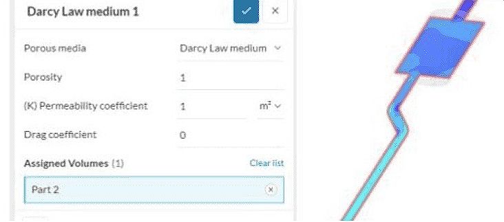 Users can now model porous media within Multi-purpose CFD simulations. This feature simplifies the setup of simulations involving filtration systems, screens, radiators, and other pressure loss obstacles. Users can define a porous medium using geometric primitives and can choose from either of the two available models: