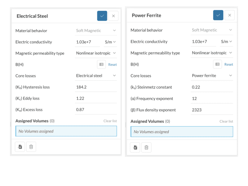 In electromagnetics applications, cores often comprise ferrites or laminated steel plates, each with unique properties shaping their application. SimScale now supports both Electrical Steel and Power Ferrite core loss models when choosing our Time-Harmonic or Time-Transient Magnetics models, providing greater accuracy in electromagnetic simulations.