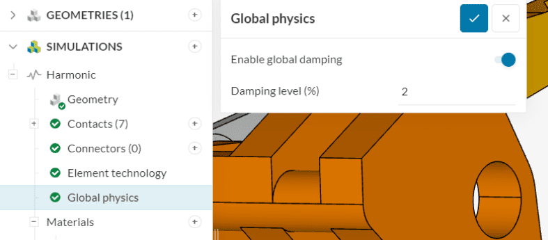 Global damping can now be applied across all parts of Harmonic Analysis, simplifying the setup process. Users can assign a constant damping level, streamlining the simulation process.