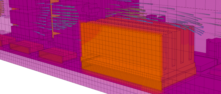 Power sources in Electronics assemblies are often small compared to their overall enclosure size. While it is important for these features to be accurately resolved by the mesh, many other small components that do not significantly impact thermal behavior do not need to be refined in the simulation model.