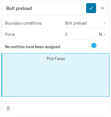 The aforementioned assumptions have led to the integration of the bolt preload feature in the UI as a boundary condition. The settings panel for the bolt preload is shown in Figure 3. Users must provide two inputs for the bolt preload boundary condition: