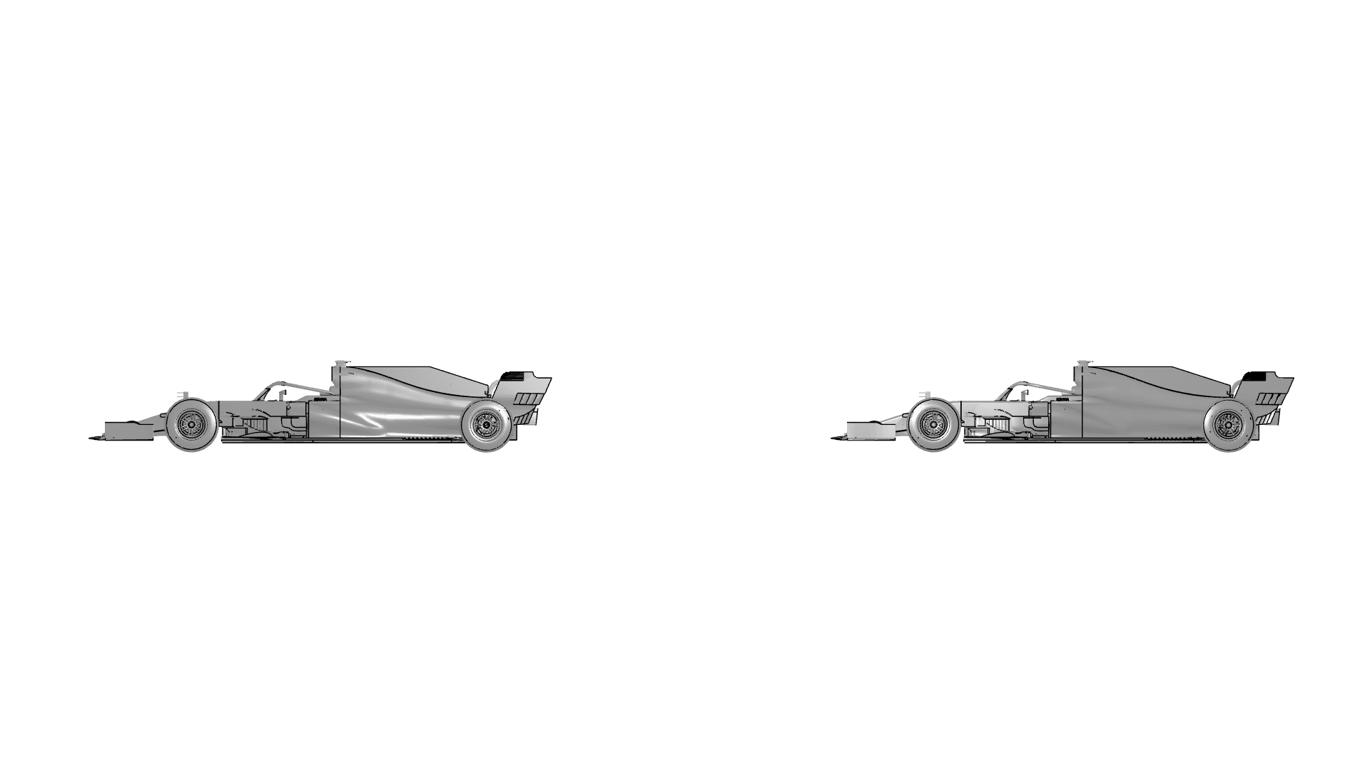 A drafting study was conducted in SimScale using the geometry from the 2019 Formula 1 regulations, as shown in Figure 5. This geometry was imported from a dirty .stl surface mesh directly into the platform. The poor quality of this starting geometry is not an issue for the LBM module, as it is able to handle non-manifold surface mesh geometries in this format.