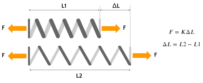 If the magnitude of the weight is varied, we will notice that the elongation of the spring is proportional to the weight, also known as Hooke’s law, and the constant of proportionality is known as the spring’s ‘rigidity.’