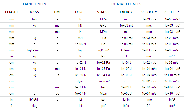 Table 1: Consistent units to be used in FEM simulations (Source: Eng-Tips)