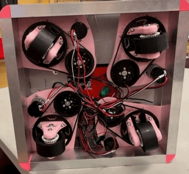 The RoboCorns undertook the ambitious project of designing a custom drivetrain known as Swerve, one of the first of its kind in the FIRST Tech Challenge (FTC). A Swerve drivetrain enables each wheel to be controlled and moved independently, necessitating the design of multiple custom parts. The team encountered a significant challenge with the mounting plate for each wheel assembly, which was made from extruded PLA+. They doubted that a 1/4-inch thick PLA+ plate could withstand the forces experienced during a match.