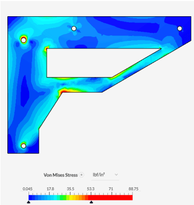 The RoboCorns’ simulations performed well, providing meaningful data that facilitated design improvements. Over the course of their competitive season, they conducted a total of six simulations to analyze the custom parts they believed were at risk of failure. These simulations were efficient, never exceeding three minutes or 0.1 core hours. The primary results they focused on were Von Mises Stress and displacement, which were crucial in determining whether their 3D-printed parts could withstand competition forces.