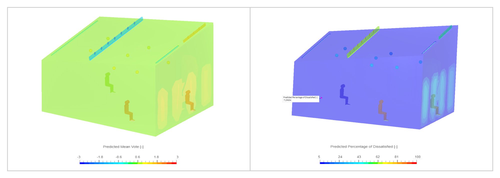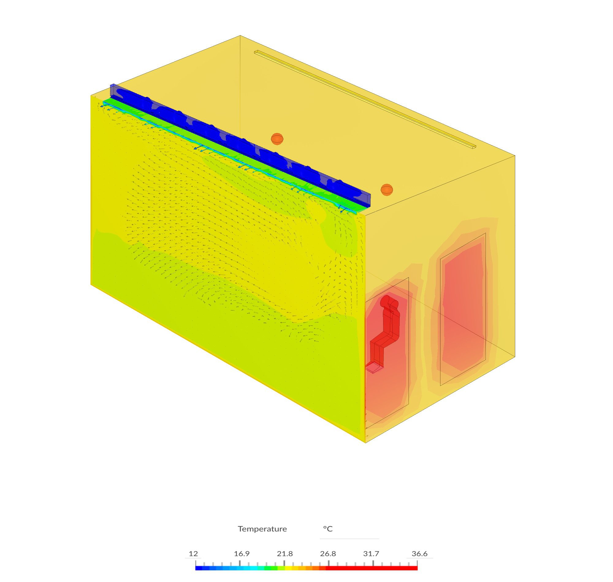 At the room level, using SimScale, AirIDEA was able to evaluate the following parameters:
