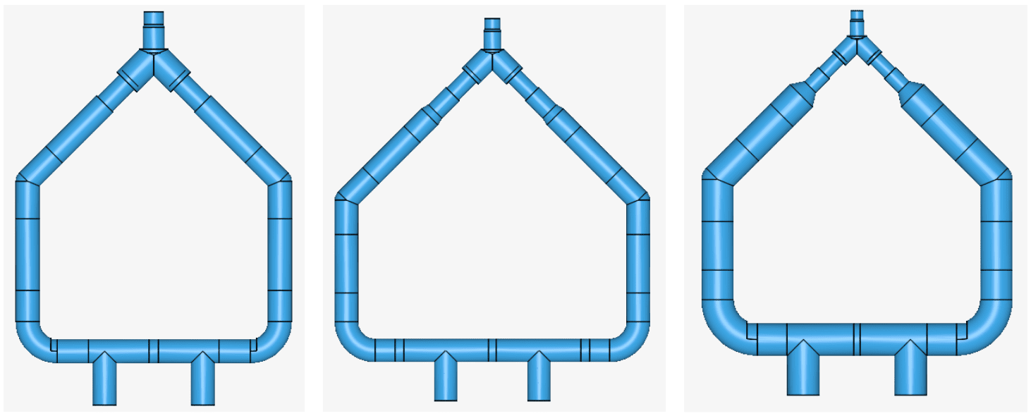 For their specific design, Axolot sought to determine how the volumetric flow was distributed from a main pipe to two outlets. Their design target was to achieve a specific velocity range at the outlet by keeping the turbulent kinetic energy, space requirements, as well as the complexity of the design low as possible. They initially had support to set up the inner volume extraction, but were then able to complete their evaluations autonomously. This involved detecting the mean volumetric flows using default automatic meshing and default inflate boundary layers.