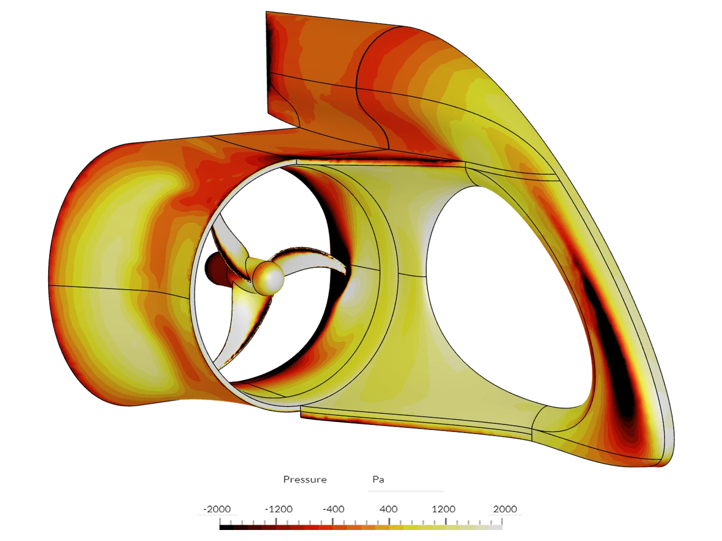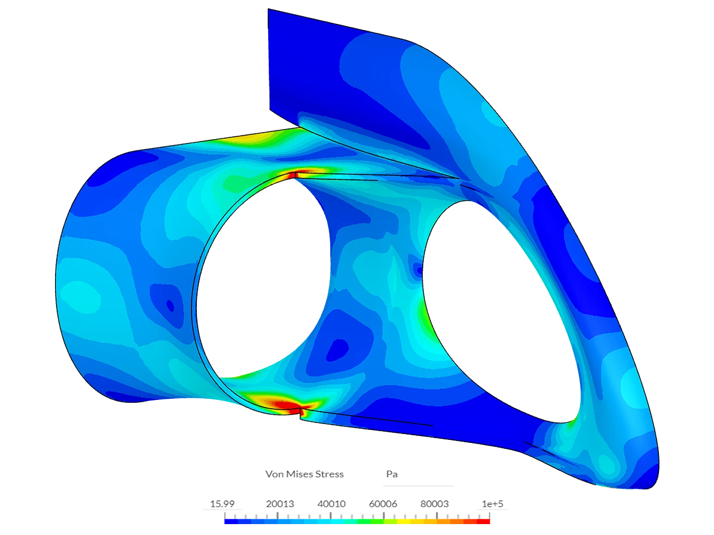 The simulation workflow has yielded significant design insights for the structural and material properties used. The team at Energyminer wanted to include a small cut in the frame of the Energyfish to let it fill with water and improve buoyancy. It was important to predict what impact this might have on surface pressure: