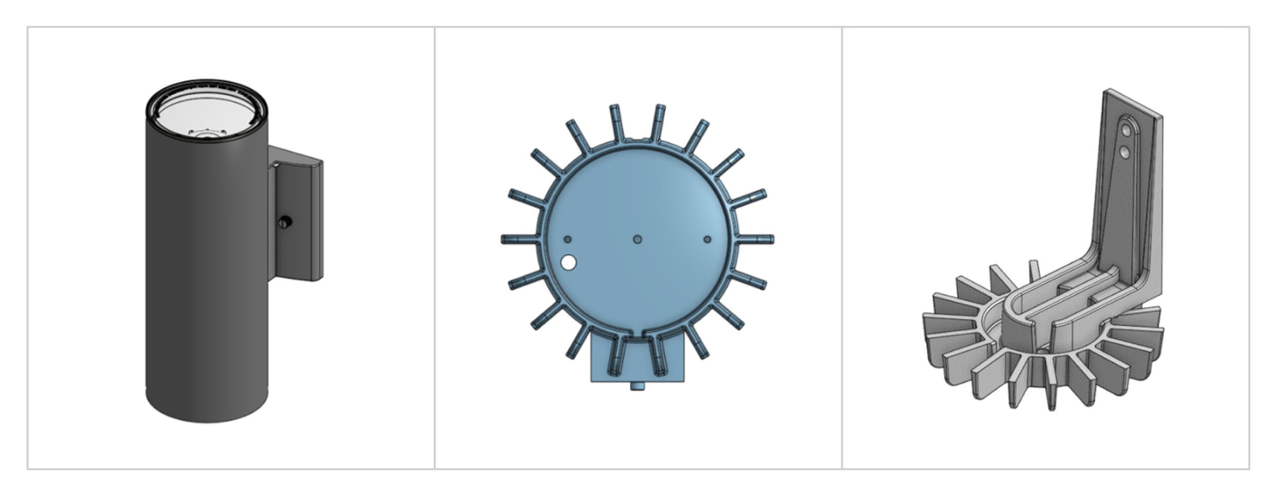 Kichler created a baseline model (control sample) to evaluate relative improvements against. Several variations of heat sink design were proposed including: