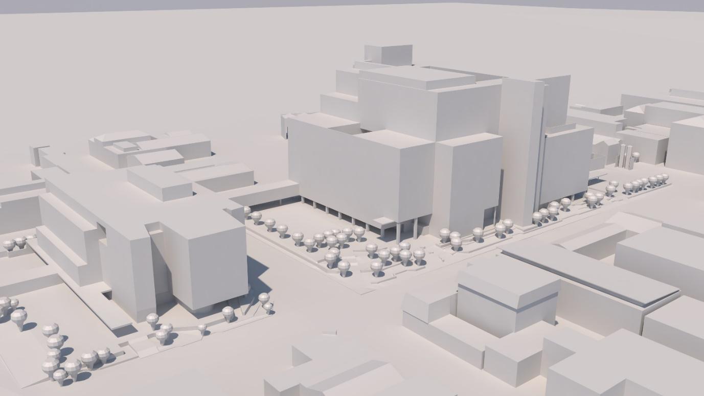 The model used the Pedestrian Wind Comfort simulation option to compare the wind climates pre- and post-earthquake. The assessment area (shown below on the pre-earthquake 3D model) covered three areas including: