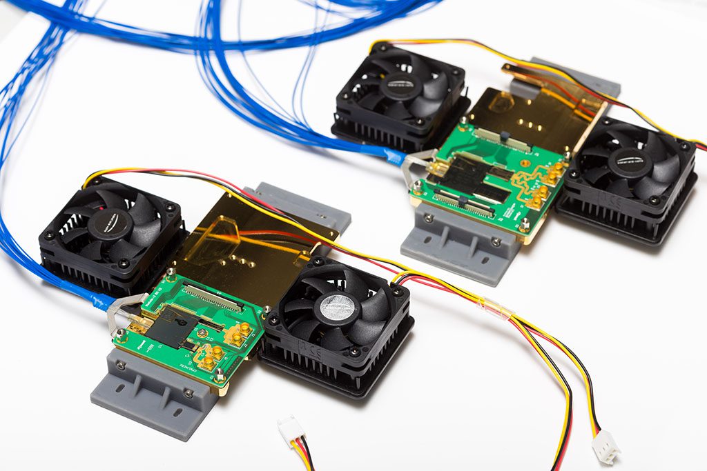 A significant challenge in the project is the thermal management of components with varying heat sensitivities and emissions. For the drone-mounted PICs, the densely integrated design makes it hard to avoid placing thermally sensitive components, in proximity to components generating a lot of heat, like the drivers for phase modulators. Solutions like Peltier thermoelectric coolers (TECs) and copper heat pipes are being explored to address these issues. PHIX’s contribution centers on the intricate packaging of these transceivers, encompassing hybrid photonic integration, precision in attaching silicon antenna rods, and optimizing thermal management strategies within the confined space of the module.