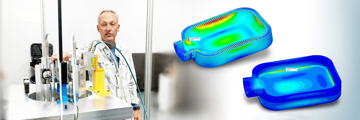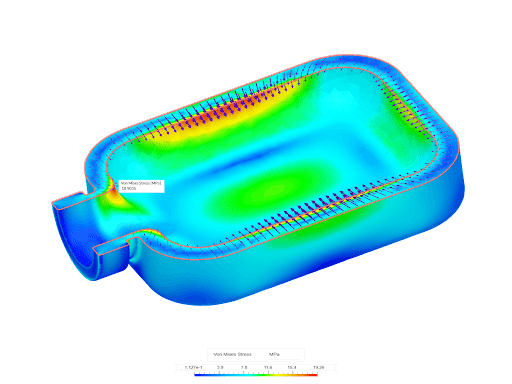 A recent project, for example, was the design and optimization of a 3D-printed pressurized canister where SimScale was employed for stress analyses to optimize the wall thickness and internal shape of the canisters. High-pressure vessels have stringent safety standards that must be adhered to during the lifecycle of the product in use. The original design (left) exhibited unsafe stresses on the walls and was improved with a new design (right) that reduced the same stress level by a factor of 4. UNSPACE also works on blue-sky research projects such as the grant-funded proof-of-concept study of a novel gravitational detector.
