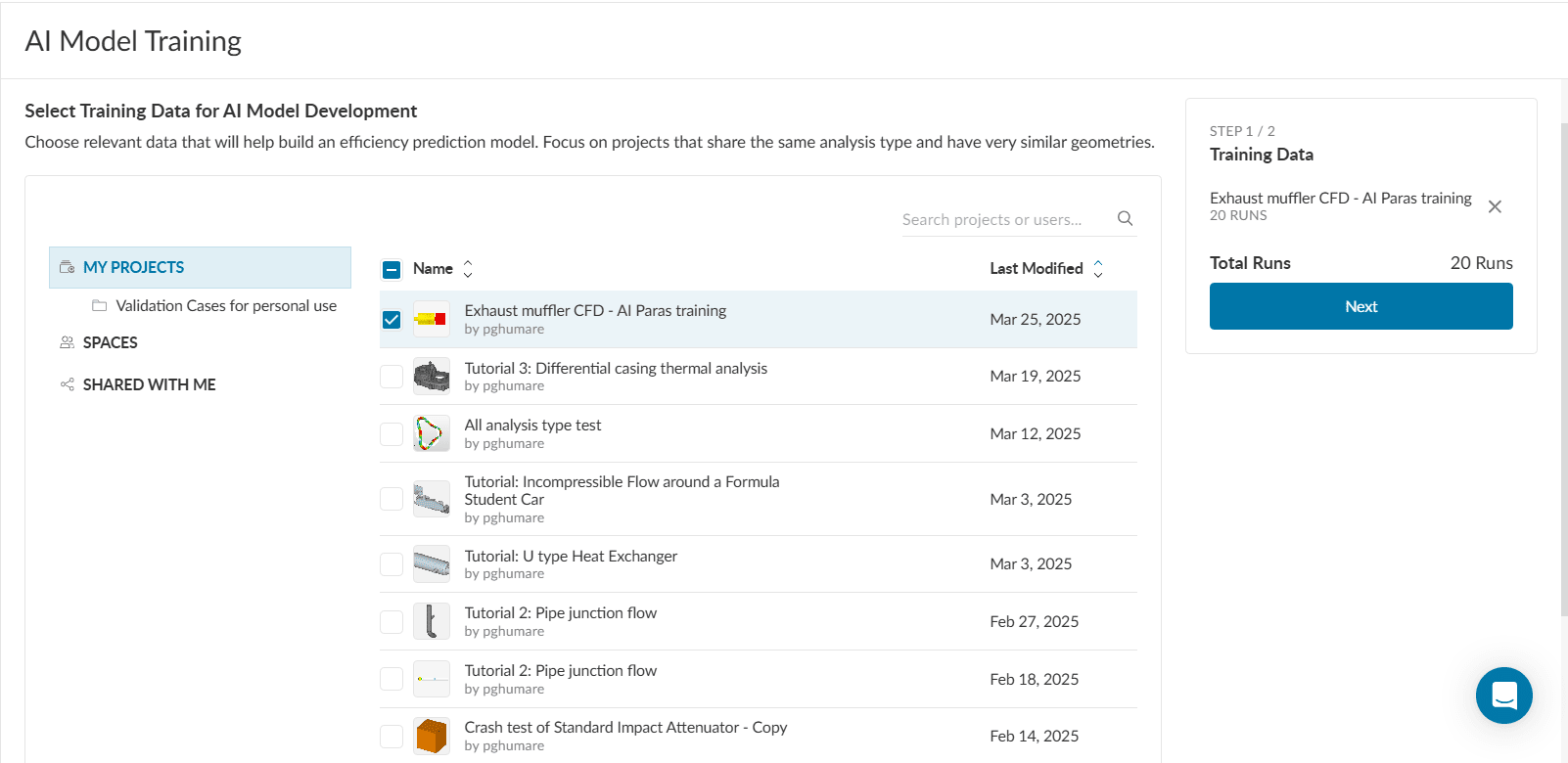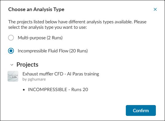 The AI training is restricted to using simulation runs from only a single analysis type. If simulation runs from multiple analysis types have been completed in the selected projects, one has to be chosen.