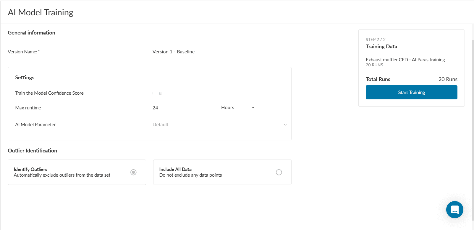 In this step, some information related to the AI model training needs to be provided before it can be started.