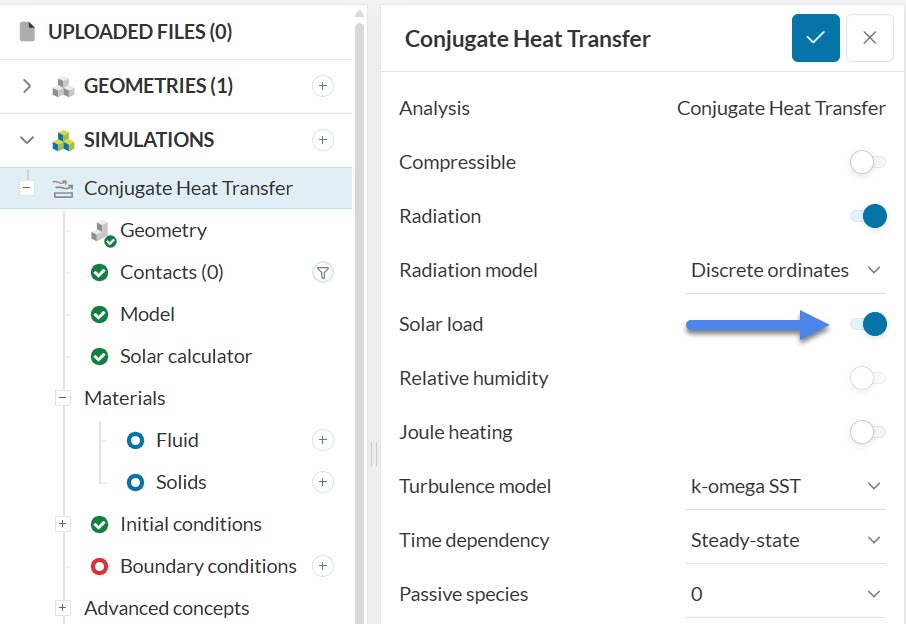In such cases, SimScale has a solar radiation module available for the following analysis types, under the global settings, as shown in Figure 1: