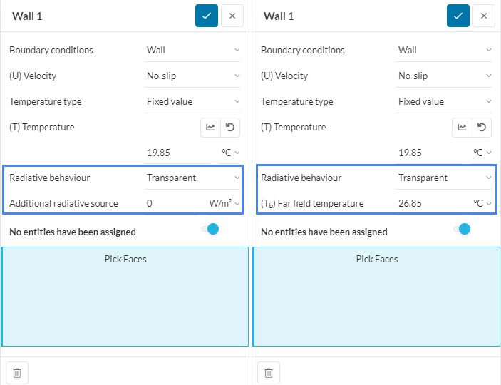 For convective heat transfer analysis, apart from the radiative heat interchange that the surfaces will perform, we can set an additional radiative source. This represents any additional (mainly external) source of radiation that goes through the surface and it will not heat it up. The best example is solar radiation getting into the domain through an open window.