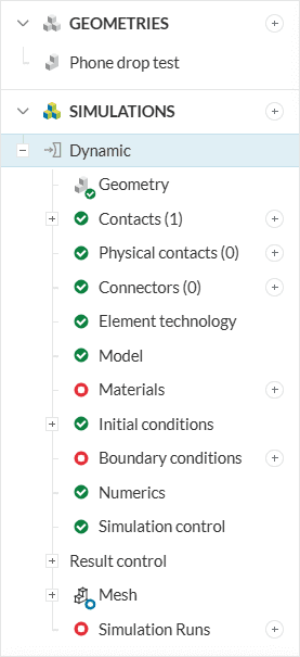 The simulation control settings define the overall process of the calculation. In there, users can set, for example, the simulation interval, minimum/maximum time step lengths, and the maximum runtime for the simulation.