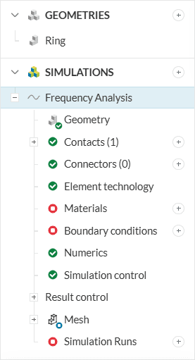Select ‘Frequency Analysis’ from the list and confirm the choice by clicking on the ‘Create Simulation‘ button. A new element will appear in the simulation tree with all the available settings:
