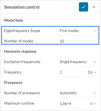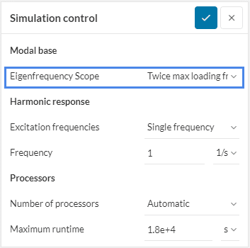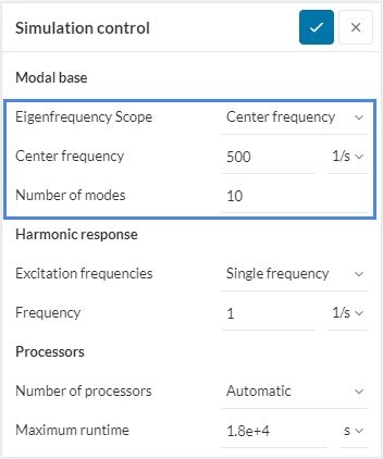 Once the Modal-based option has been applied the user can adjust the numerical settings for the Modal base as well as Harmonic response.