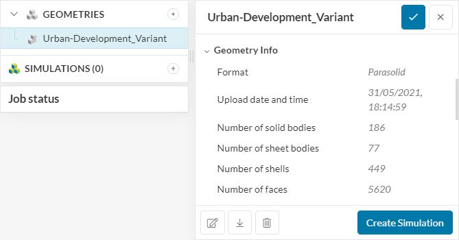 The Geometry section allows you to view and select the CAD model required for the simulation. It is important that the CAD model is well prepared to avoid any meshing or simulation-related errors. Find more details on CAD preparation and upload here.