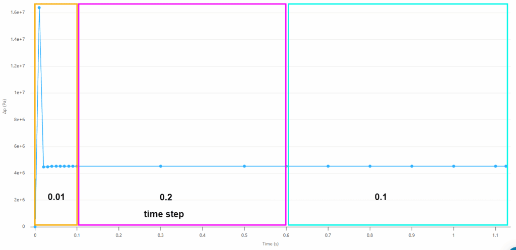 For each simulation duration, the end time is respected irrespective of the defined time step. Every consequent run will start from the end of the previous run’s duration. For e.g., row 2 in Table 1 calculates the time step 0.6 despite being just 0.1 seconds time step away from 0.5. Similar behavior is observed in row 3 with the time step 1.125, and the simulation stops.