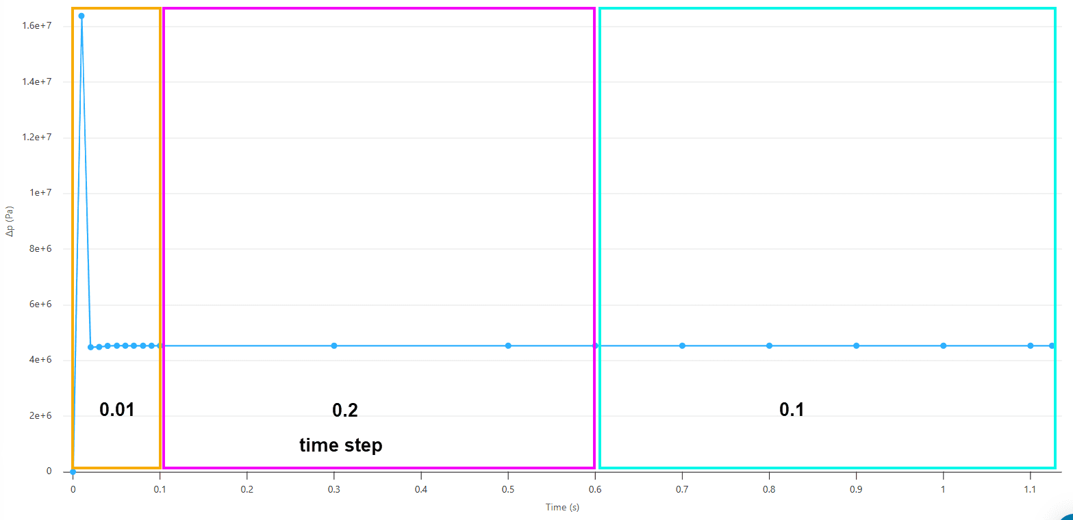 Continuing from the above example, a typical simulation result control plot with varying time steps would look as follows: