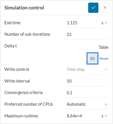 Under the Simulation control item in the simulation tree, the settings panel is as depicted in Figure 1: