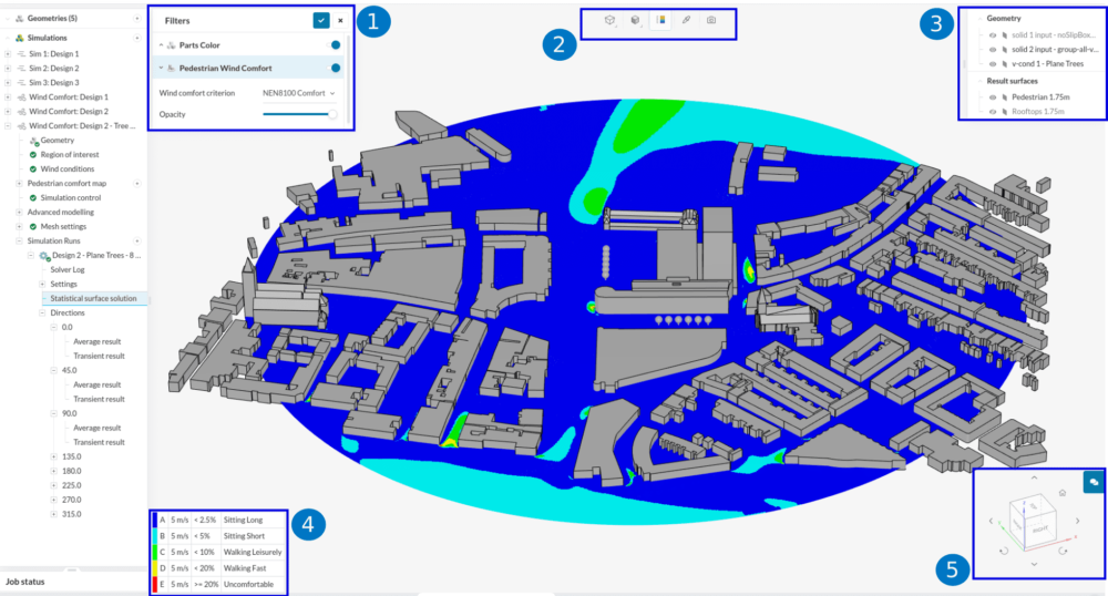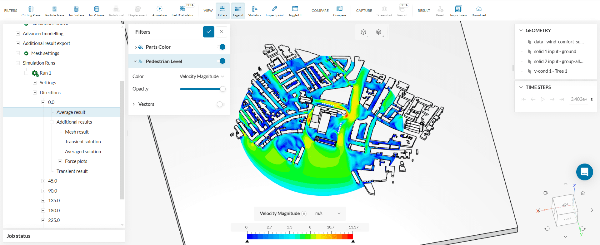 Once all individual wind directions have been computed and also the statistical analysis on the wind comfort has been carried out, the simulation run changes to Finished state, and the user is informed via email that the results of the run are now ready for visualization.