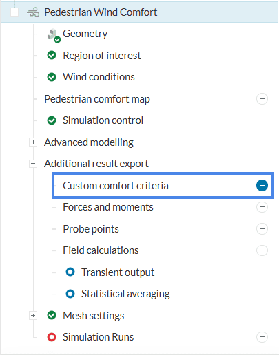 Under Additional result export, click on the ‘+’ button next to Custom comfort criteria to create one:
