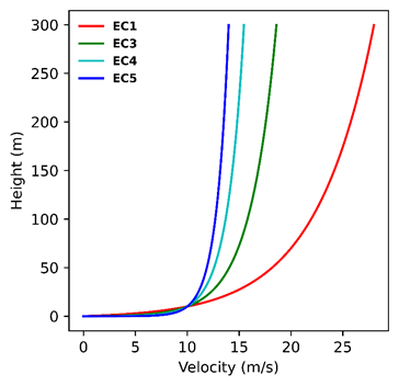 | Correction factor wrt EC4 $$(\frac{u}{u_meteo})$$ | 1.175 | 1 | 0.837 | 0.653 | 0.491 |
