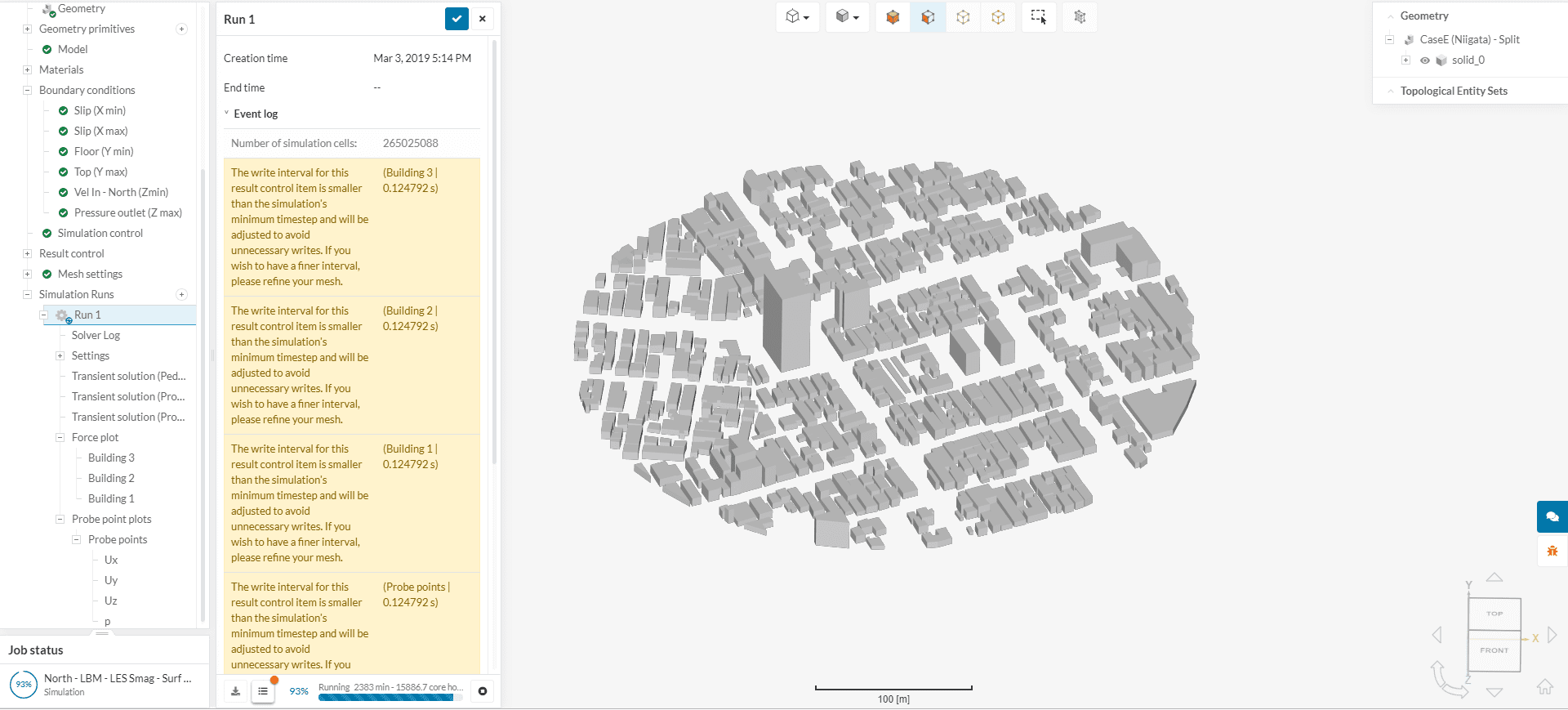 In wind loading, where you simply want to understand pressures on the surfaces of the building, you could export fluid and surface data around a city, or reduce it to just the building of interest. Furthermore, we could remove the volume data and only export surface data reducing the size of the results to two dimensions.