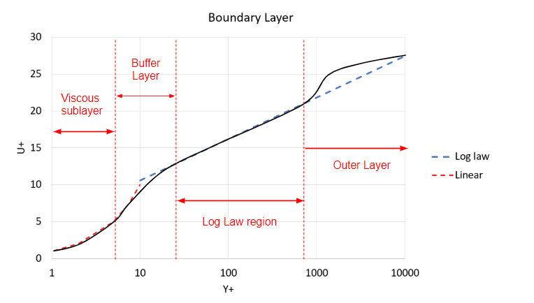 From Figure 2 we can see the different regions of the boundary layer and why when modeling the layer it’s encouraged to avoid the Log Law Region. However, K-omega SST models the layer up until the first cell and then solves from there on, and this model has been proven to be very accurate in many industries including the aerospace industry.