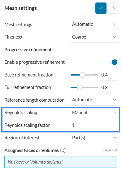 The Reynolds scaling factor can be accessed under Mesh settings, for both Incompressible LBM and Pedestrian Wind Comfort analyses: