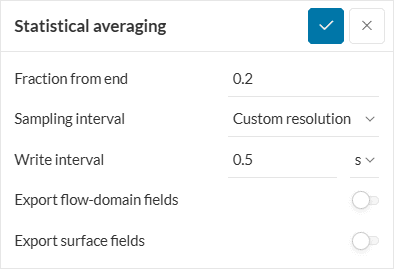 We can’t take every time step for the calculation of the average, as this would be computationally too expensive. Hence, to make the computation effort feasible, we use the Sampling interval that stores results only every 2nd, 4th, or 8th time step (besides custom resolution) for the averaging.
