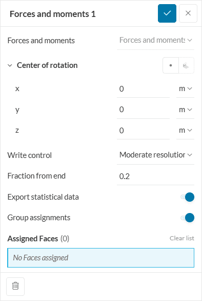 This result control item allows calculating forces and moments in the course of the simulation by integrating the pressure and skin friction over a boundary. It is possible to select a set of boundaries to calculate the overall force and moment on them.