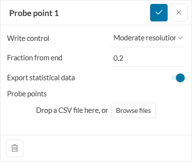 We could be even more conservative, we could know the points of interest and upload these points as a CSV file and export them every time step.