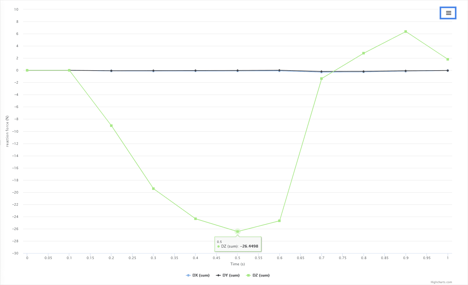 The data plot can be seen in Figure 2, with functionality such as curve hover to probe. Also, the menu button highlighted at the top-right allows downloading the data in different formats, for local plotting and processing.