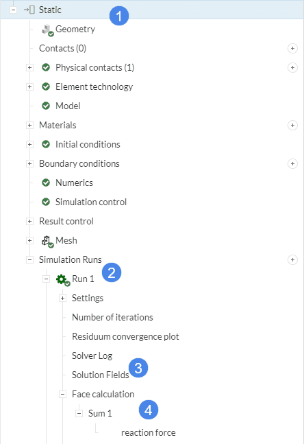 4. A result control item is identified by its type, for example, Face calculation, then by Sum 1 and finally reaction force.
