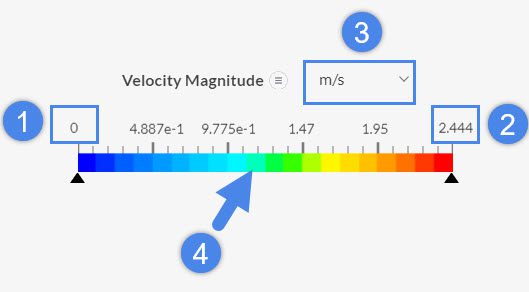 The post-processor goes through the list of filters, checking which parameters are being analyzed. Only the legend for these parameters will be visible. For example, in the image above the only parameter in the filters is velocity magnitude. Changing the field on the filters will change the legend as well.