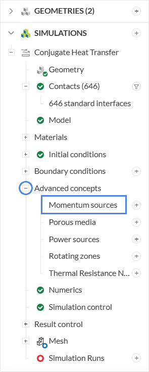 By clicking on the ‘+’ button next to Momentum sources in the simulation tree, a drop-down window appears: