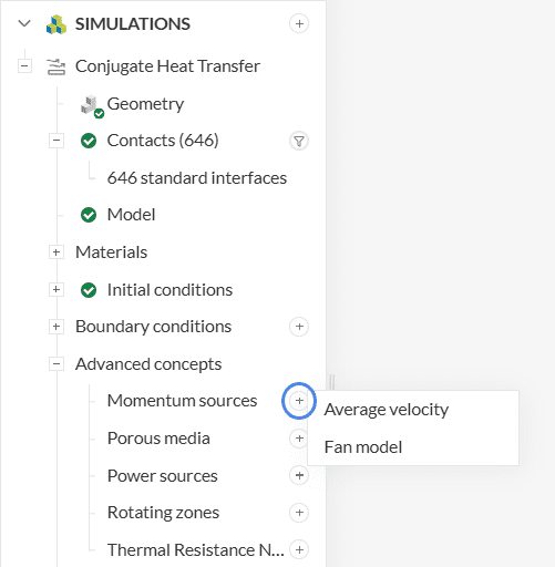 Two types of momentum sources are supported: Average velocity and Fan model.