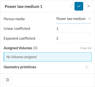 Note that a power law media will always be isotropic. Cell zones and geometry primitives can be used to assign a power law porous media.