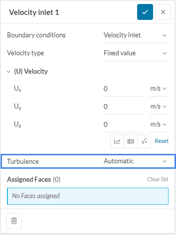 SimScale allows for the definition of turbulence at the velocity inlet. The user has three options to choose from.