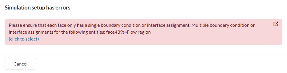 If an interface is assigned to a boundary condition, the following error message is displayed when the user tries to start a simulation: