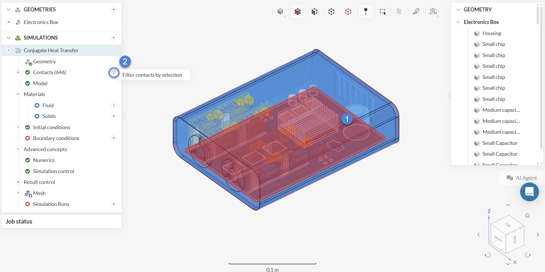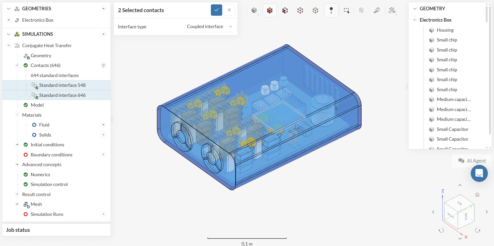 In a Conjugate Heat Transfer (CHT) analysis, an interface defines the physical behavior between the common boundaries of two regions that are in contact, e.g. solid-solid, or solid-fluid.